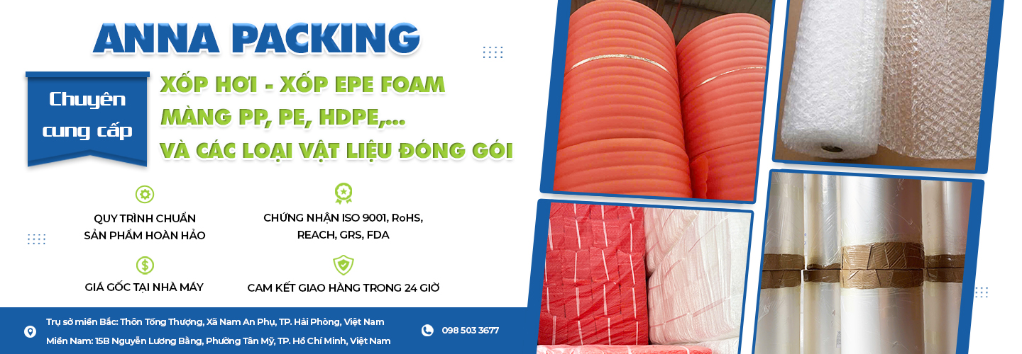 Công ty TNHH Anna tự hào là một trong những đơn vị hàng đầu chuyên cung cấp các sản phẩm đóng gói chất lượng cao, phục vụ cho nhu cầu bảo vệ hàng hóa trong vận chuyển và lưu trữ.